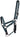 Halfter mit silberfarbenen Beschlägen. Dreifach verstellbar: am Hals, am Kehlkopf und am Kiefer. Die Löcher sind mit Ringen versehen.