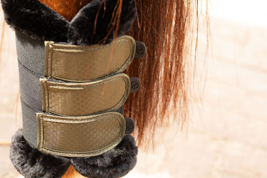 Beinschützer mit elastischem Klettverschluss. Die Innenseite ist mit Mesh gefüttert für effektive Wärmeableitung und mit einem Kunstfellbesatz für einen luxuriösen Look versehen. Die optimale Passform bietet dem Pferd viel Bewegungsfreiheit. Die Schützer sind bei 30 Grad Celsius maschinenwaschbar.