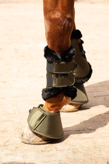 Springstiefel mit elastischem Klettverschluss. Die Innenseite ist mit Mesh gefüttert und die Schoner können bei 30 Grad in der Waschmaschine gewaschen werden.
