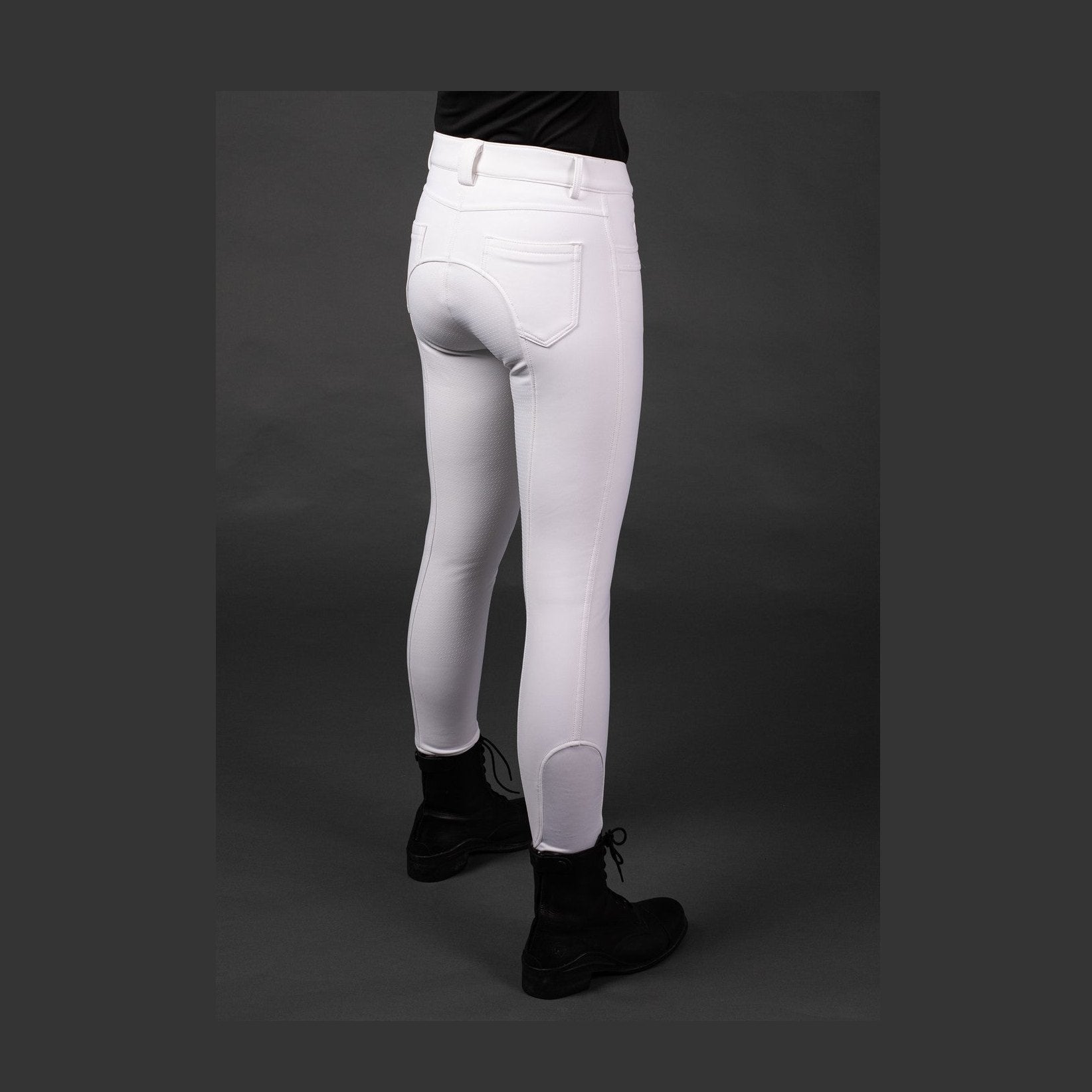 Wasserabweisende Reithose mit rundgenähtem Gesäß mit Silikonbesatz, zwei Gesäßtaschen und „Flexlegs“. Dezente Ziernähte und Gürtelschlaufen runden das Design ab. Feines 4-Wege-Stretch-Softshell-Material mit Fleece-Innenseite. Ideale Reithose für den Winter.