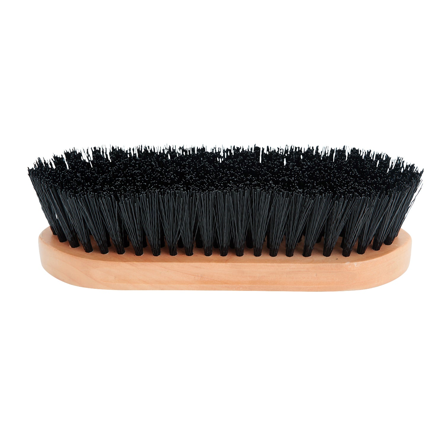 Harte Bürste mit Holzgriff. Maße: Länge: 18 cm, Breite: 5,5 cm, Höhe: 6,5 cm
