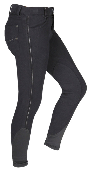 Coole Jungenreithose mit Stoff-Kniebesatz aus Baumwolle. Die Hose ist mit einer Jeanstasche und Kontrastnähten versehen. Produktspezifikationen: Jungenreithose Jeanstasche Kontrastnähte Stoff-Kniebesatz Material: 92 % Baumwolle, 8 % Elasthan ø gestrickt