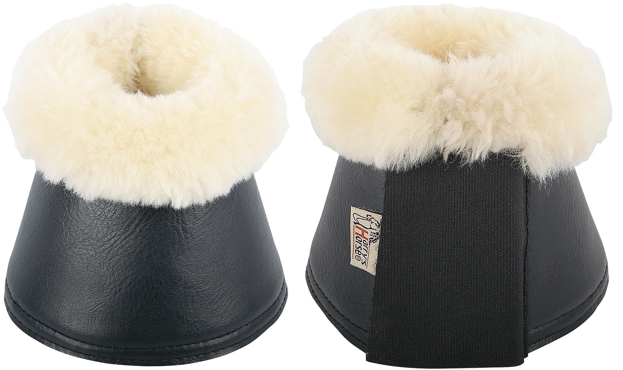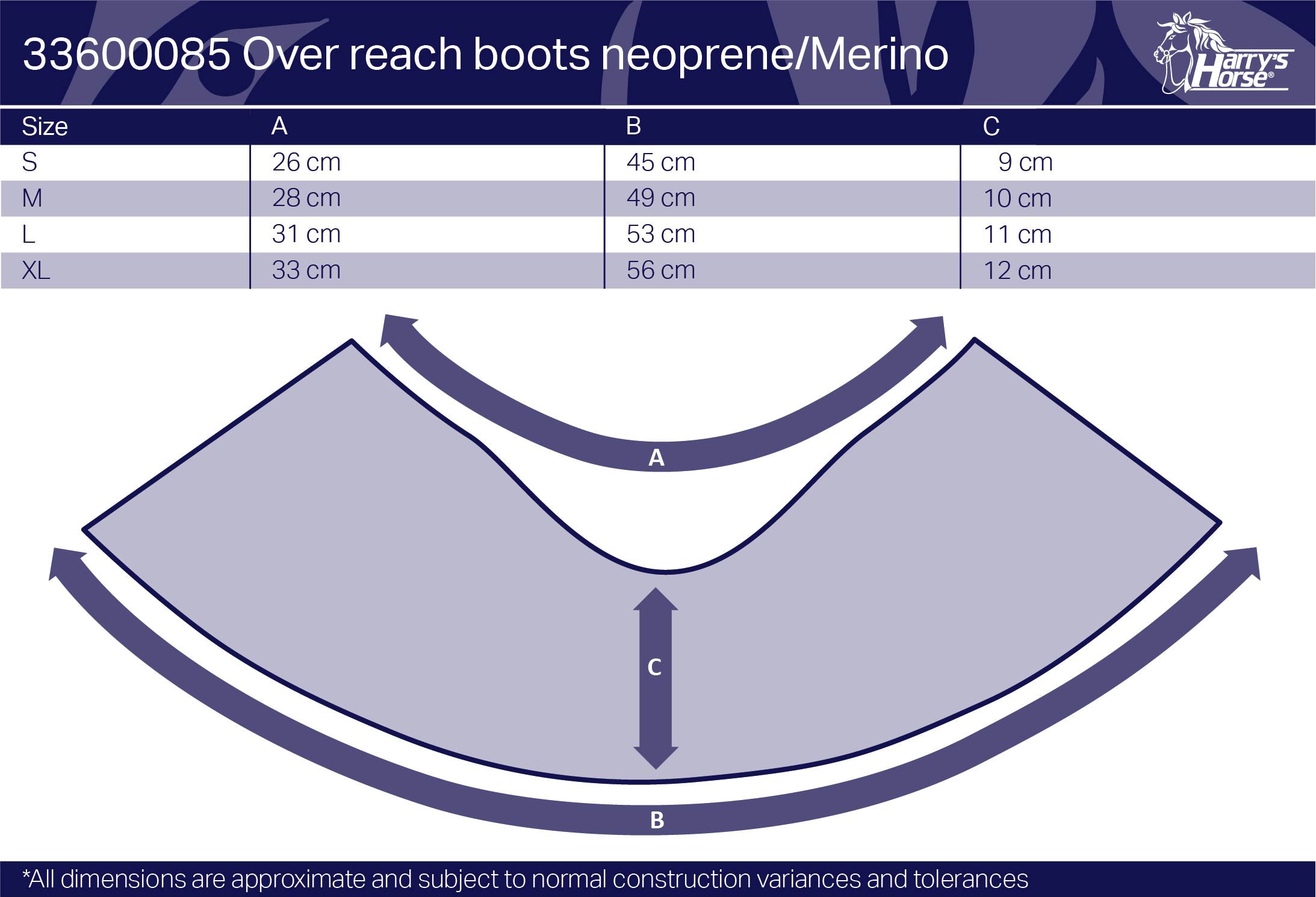 Neopren-Übergriffschuh mit PU-Außenmaterial und Klettverschluss. Die Einfassung aus Merinowolle verhindert Reibung an der empfindlichen Haut im Fesselbereich.
