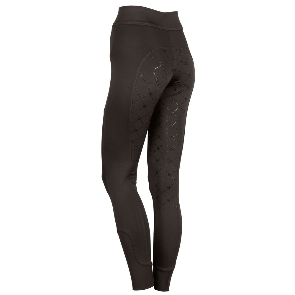 Legging d'équitation avec deux poches dont une avec fermeture éclair, détails en cristal, un siège avec un imprimé en silicone pour une meilleure adhérence en selle et un insert élastique autour des chevilles.