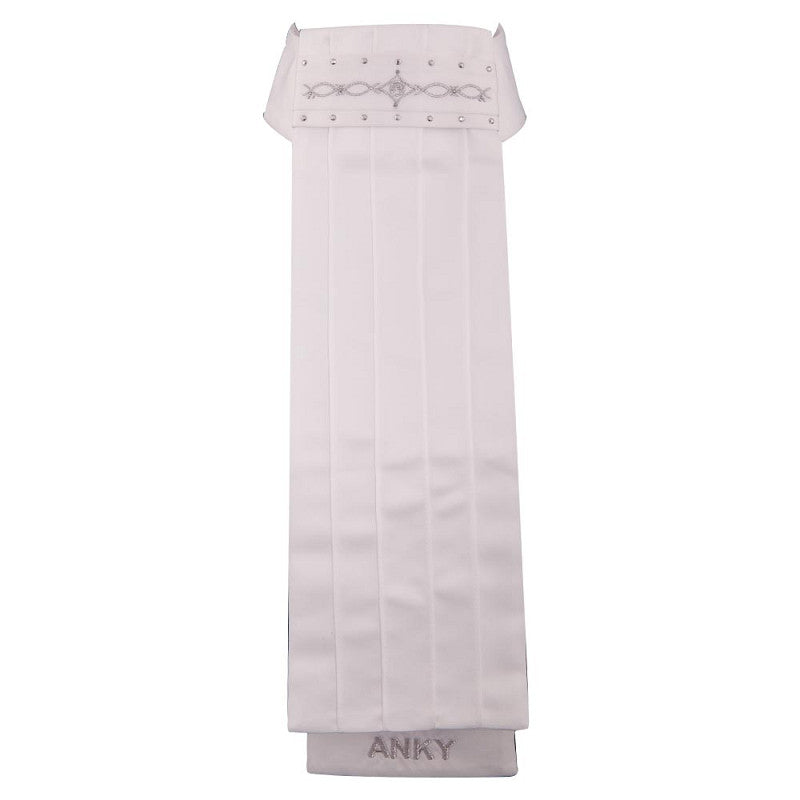 Deze plastron is voorzien van stijlvolle borduring en strass steentjes, wat zorgt voor een chique uitstraling. Het geplooide effect geeft de finishing touch en creëert een verfijnde, elegante detaillering die perfect past bij wedstrijdkleding.