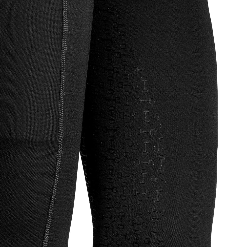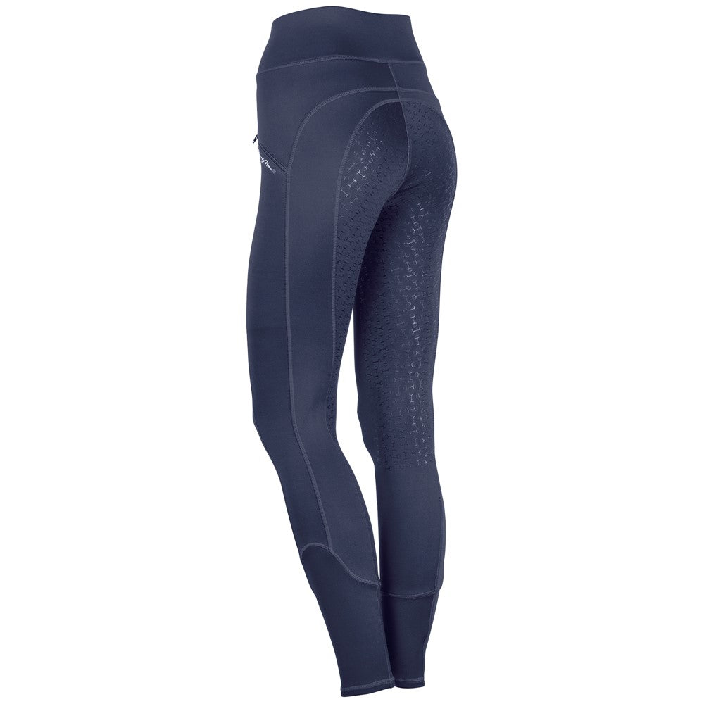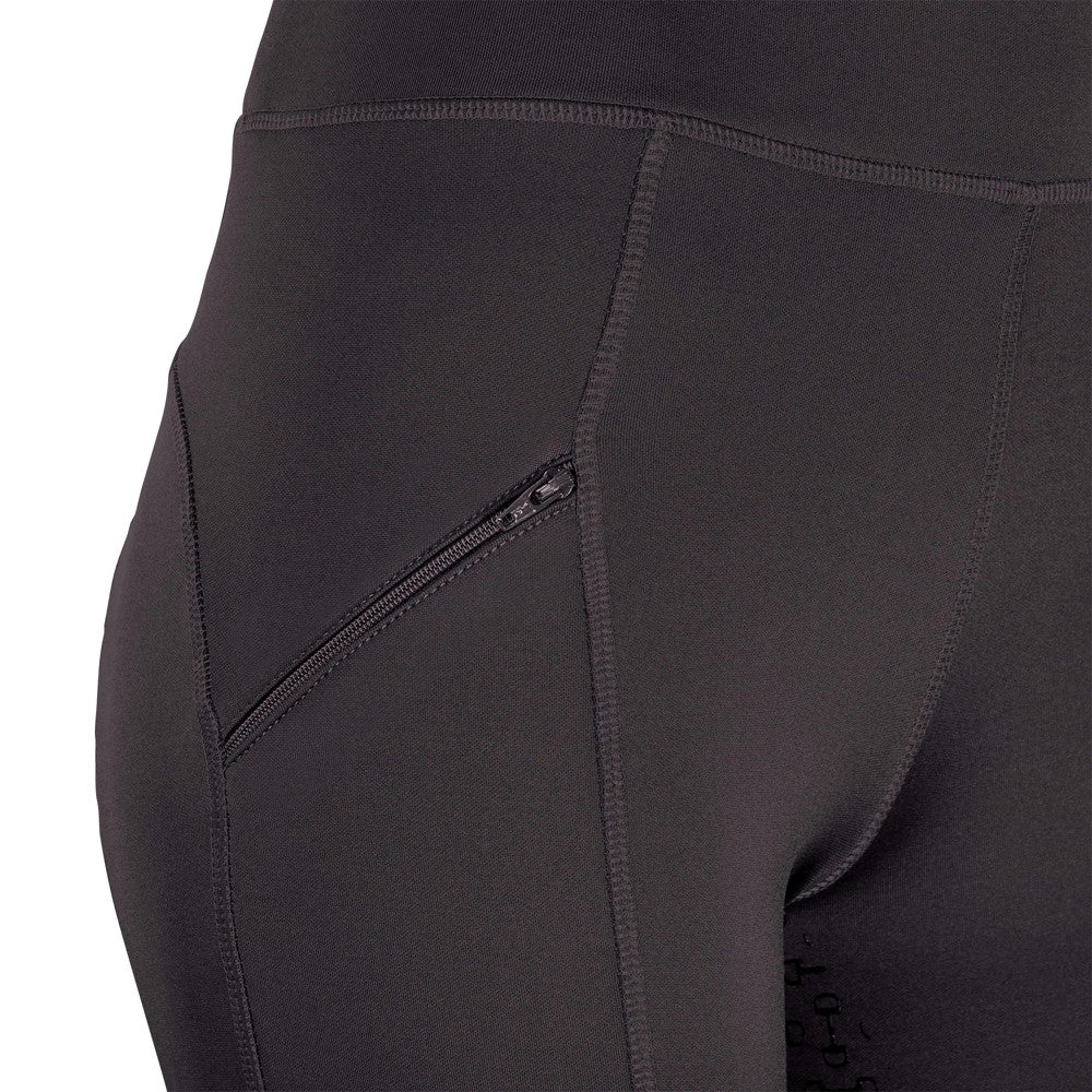 Leggings d'équitation en tissu extensible et très confortable. Ils sont dotés de deux poches latérales zippées, d'une assise à coutures rondes avec silicone pour une meilleure adhérence en selle, et de jambes flexibles pour plus de confort sous les bottes d'équitation.