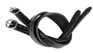 Courroies d'éperons en cuir verni crocodile. Caractéristiques : renforcées par une doublure en nylon. Longueur de la paire : 45 cm.