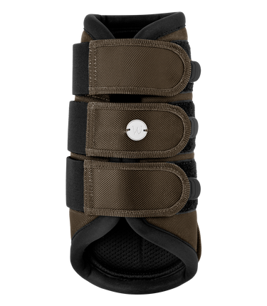 Diese hochwertigen Dressurgamaschen sind speziell für Vorder- und Hinterbeine konzipiert und vereinen besten Schutz mit stylischem Design. Das Innenmaterial besteht aus atmungsaktivem Mesh, welches Hitzestau effektiv verhindert und für hervorragende Belüftung sorgt. Das robuste 1680 Denier Außenmaterial sorgt für erstklassigen Aufprallschutz, während die verstärkte Schlag- und Trittschutzzone maximalen Schutz bietet. Der weiche Rand sorgt für ein angenehmes Tragegefühl. Der breite Klettverschluss mit elastischem Einsatz sorgt für sicheren Sitz und festen Halt. In Größe M verfügen die Gamaschen über zwei Klettverschlüsse, während die Größen L und XL jeweils mit drei Klettverschlüssen ausgestattet sind. Ein edles anthrazitfarbenes Metalllogo rundet das Design ab. Verkauf paarweise.