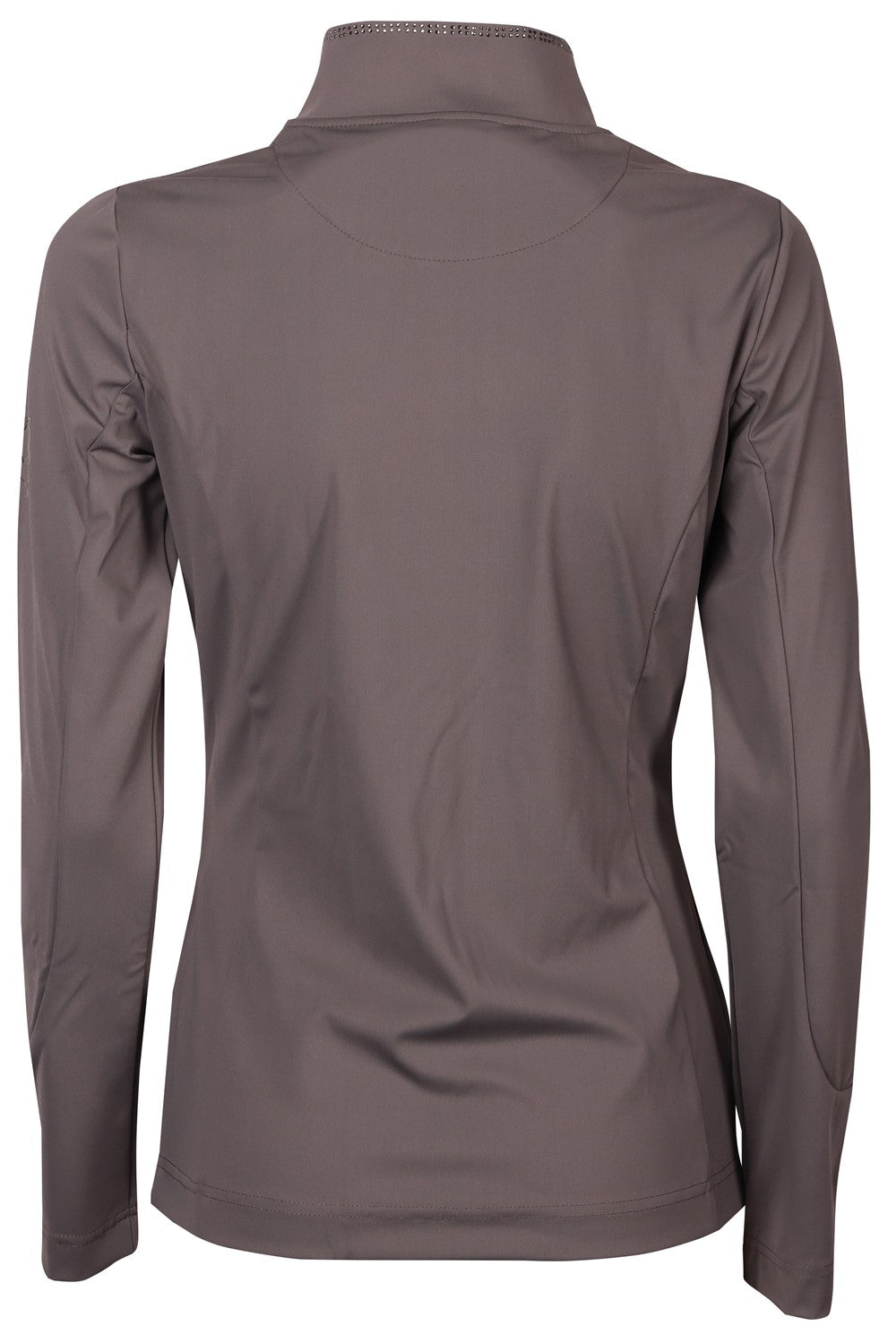 Strickjacke mit Stehkragen, verziert mit einer doppelten Reihe von Kristallen, einem Zwei-Wege-Reißverschluss, zwei seitlichen Reißverschlusstaschen und dem Denici Cavalli-Logo auf dem linken Ärmel.