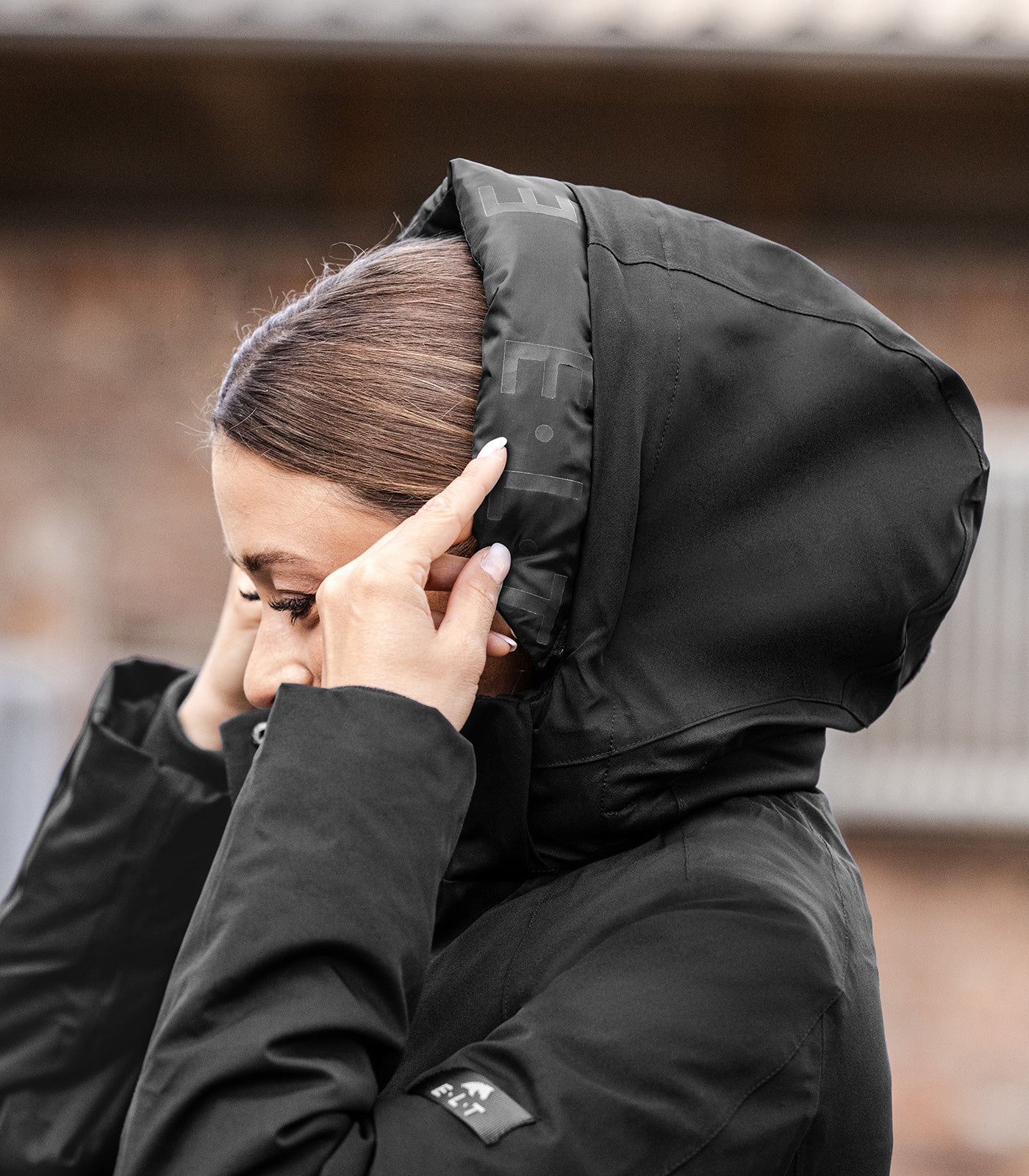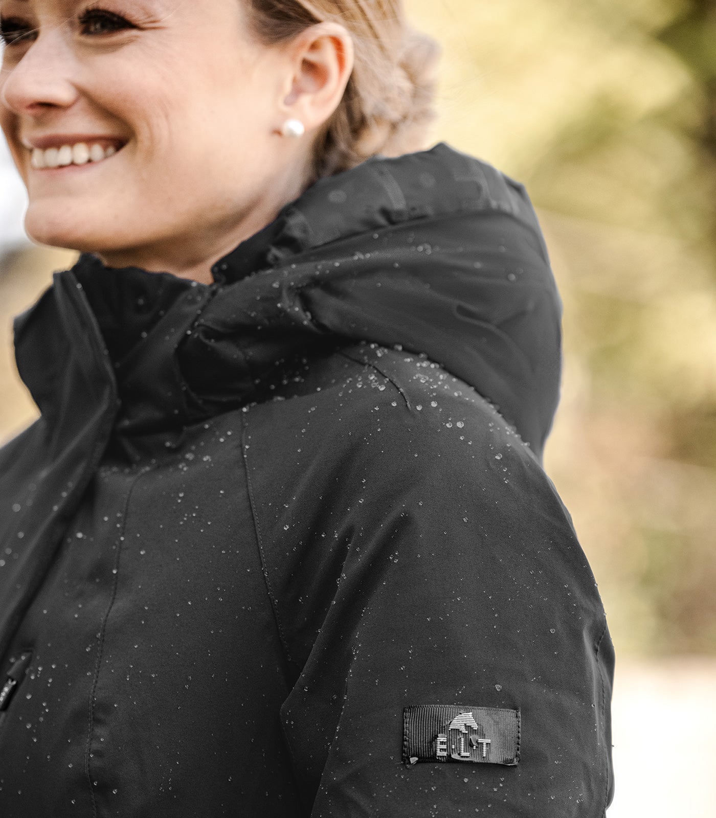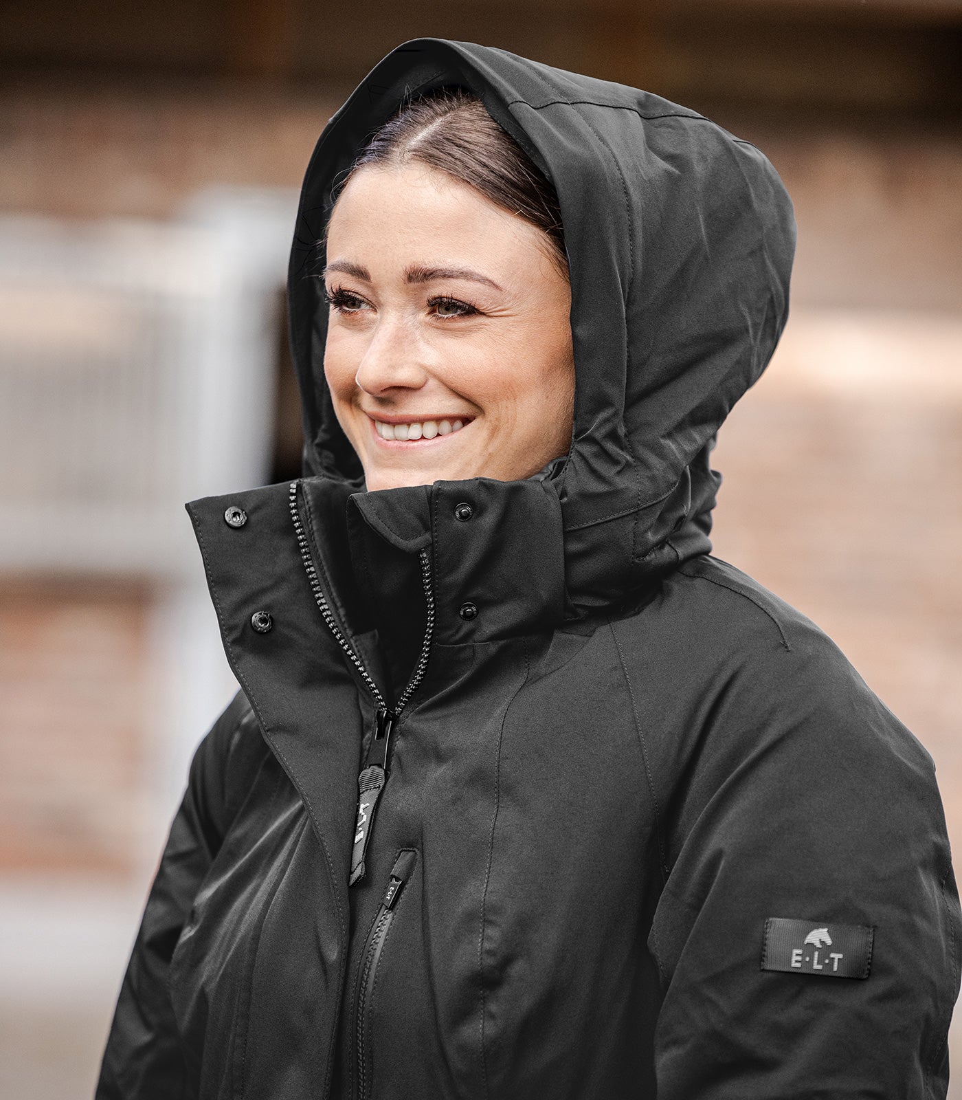 - Abnehmbare Kapuze mit gefüttertem Schirm und reflektierendem E·L·T-Logo
