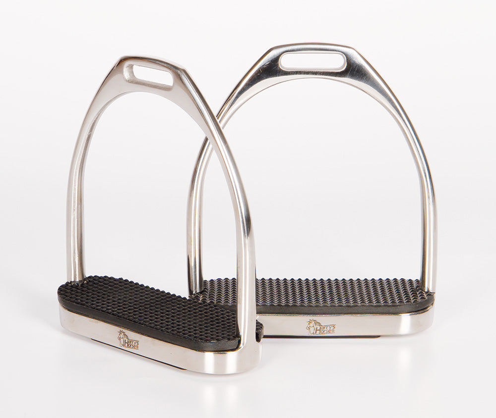 Hergestellt aus hochwertigem Edelstahl. Bietet Komfort und Stabilität für Pferd und Reiter, inklusive gerader, elastischer Sohlen.