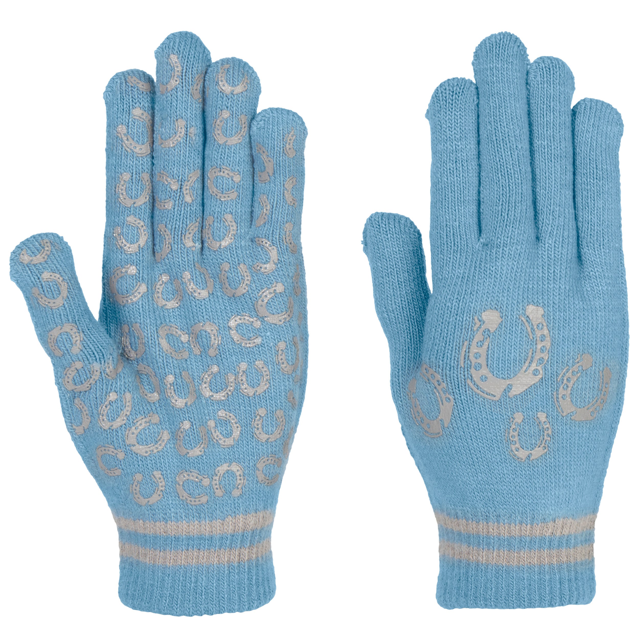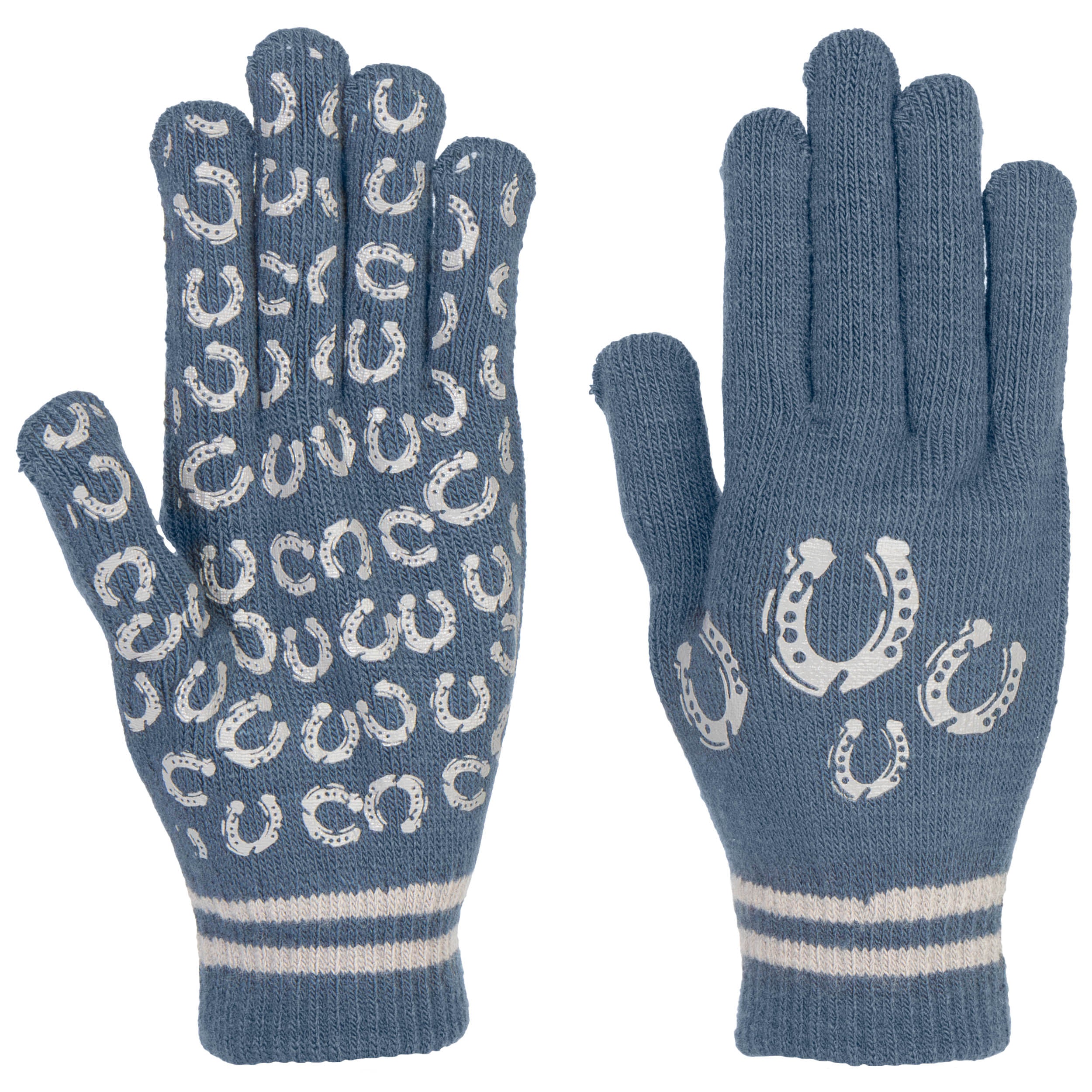 Stilvolle, dehnbare Strickhandschuhe mit eng anliegendem Bündchen. Die Handfläche ist rutschfest und mit einem verspielten Hufeisenmuster versehen.