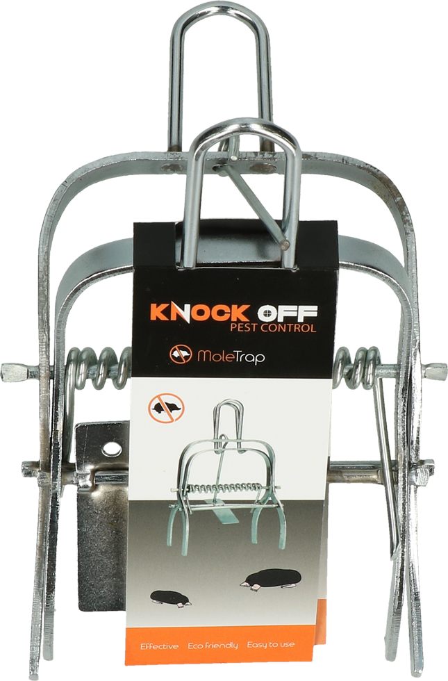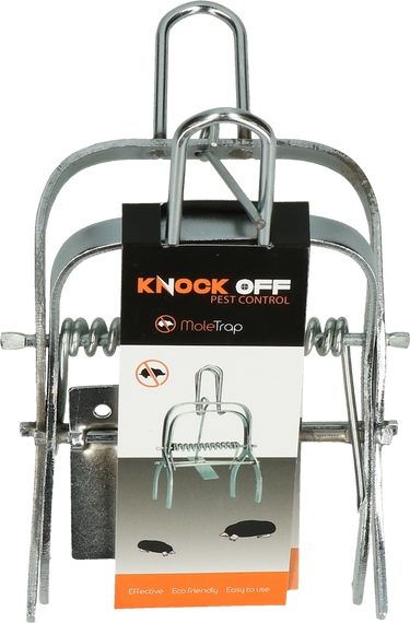 La trappola per talpe Knock Off (zincata) è una robusta trappola dotata di una molla extra potente per ottenere buoni risultati di cattura anche in terreni più compatti. Facile da armare grazie alle impugnature ergonomiche. Le impugnature aiutano anche a controllare visivamente se la trappola è scattata.