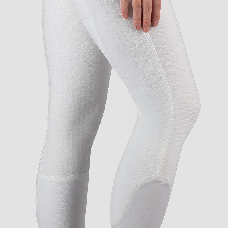 Basic dames rijbroek met twee voorzakken en een matte rijst siliconen zitvlak. Productspecificaties: Basic gebreide katoenen rijbroek Elastische enkelsluiting riemlussen twee voorzakken Mat siliconen zitvlak Materiaal: 95% katoen 5% elastaan Gebreid
