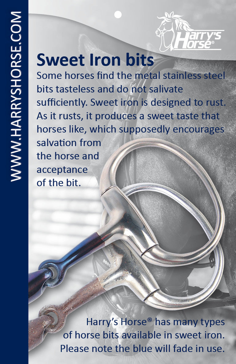 Door contact met (lucht)vochtigheid ontwikkeld Sweet Iron oppervlakteroest. De zoete smaak van deze oppervlakteroest stimuleert op een natuurlijke manier de speekselaanmaak waardoor het bit beter wordt geaccepteerd. Het paard zal meer gaan schuimen.