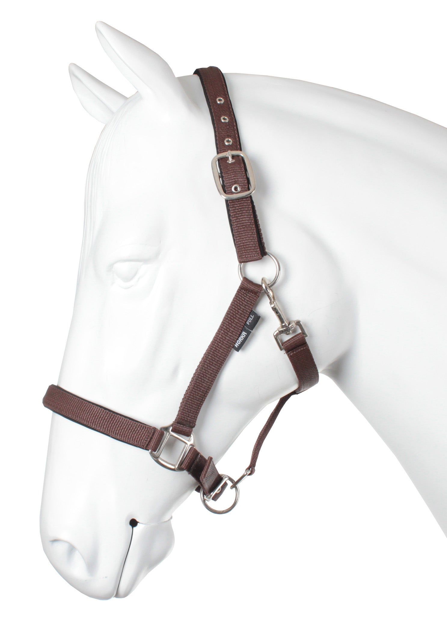 Nubuk-Halfter. Produktspezifikationen: PP-Halfter Verstellbares Genickstück mit Schnalle Verstellbares Nasenband Genickstück und Nasenband sind mit weichem Nubuk gefüttert